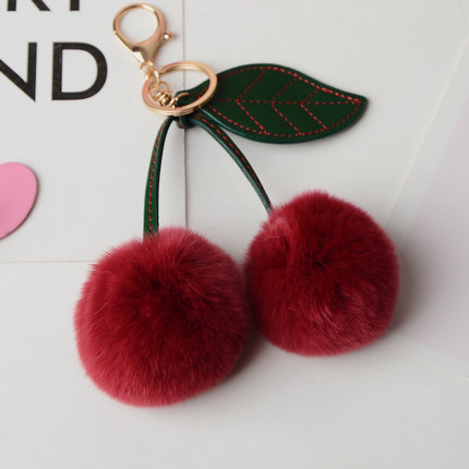 獭兔毛小樱桃汽车钥匙扣包包挂件