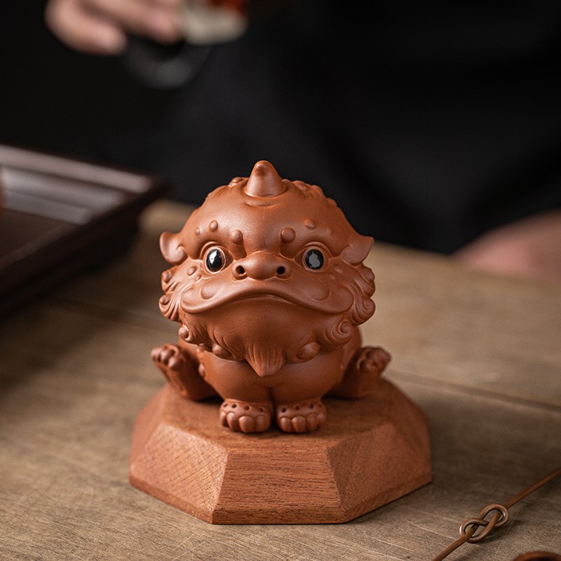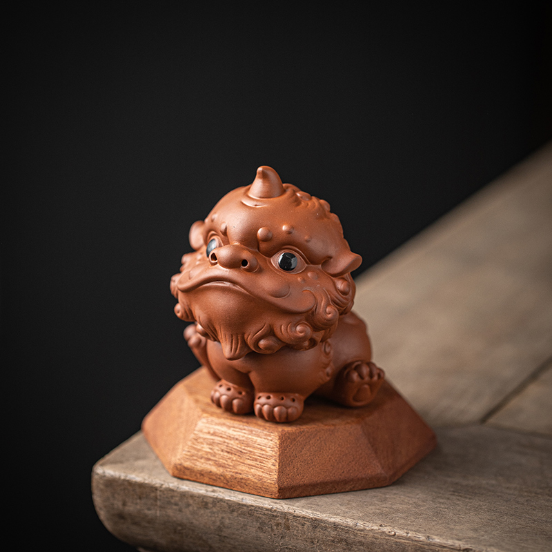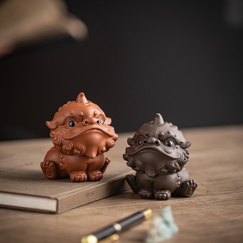 国潮醒狮摆件陶瓷茶宠家居茶室桌面装饰品办公室招财小狮子吉祥物
