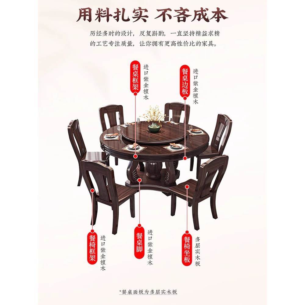 中国紫檀实木圆形餐桌客厅与转盘现代简单的全实木餐桌和椅子组合