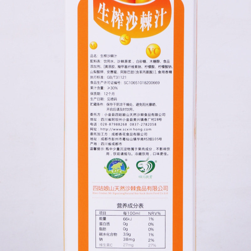 四姑娘山生榨沙棘汁大瓶四川阿坝