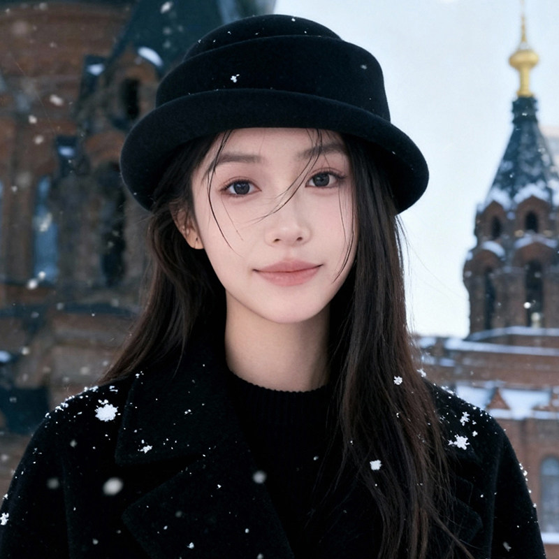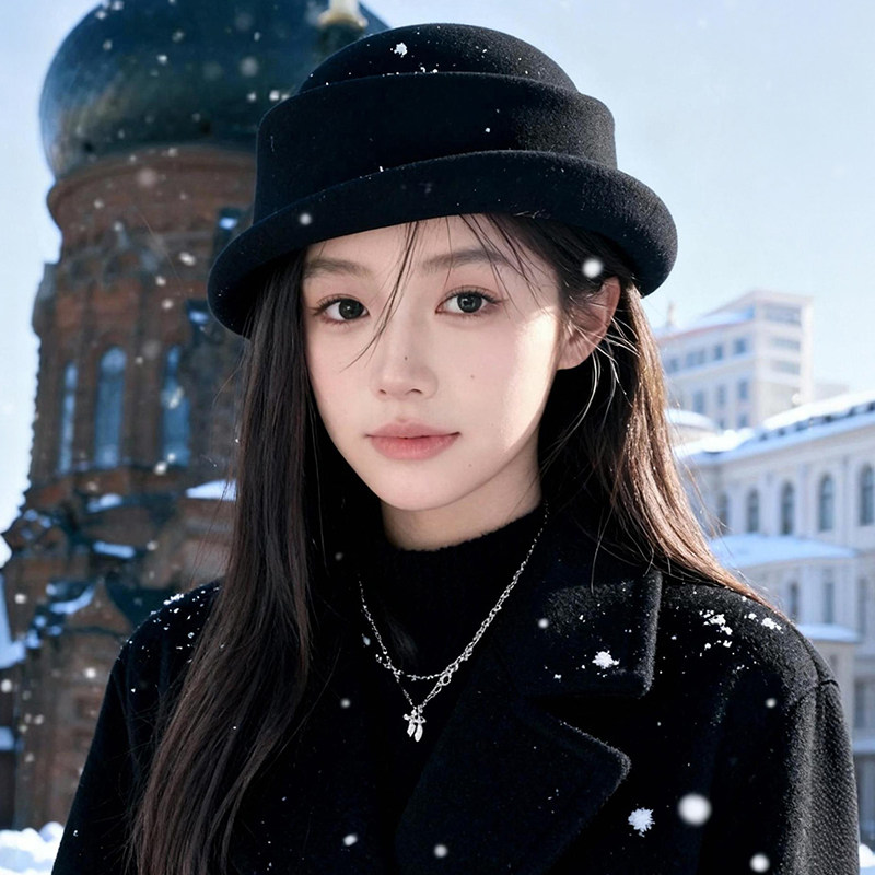 法式千金风黑色卷边礼帽女秋冬复古百搭显脸小高级感羊毛呢渔夫帽