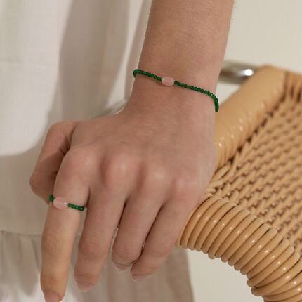 N/L天然粉晶绿水晶手链戒指