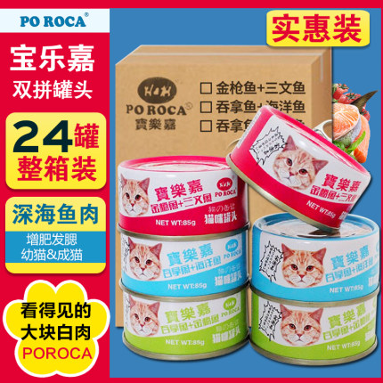 宝乐嘉白肉猫罐头85g*24罐金枪鱼吞拿三文鱼鸡肉双拼罐头猫零食