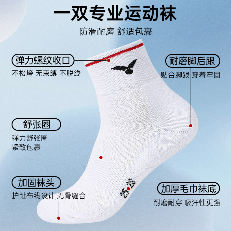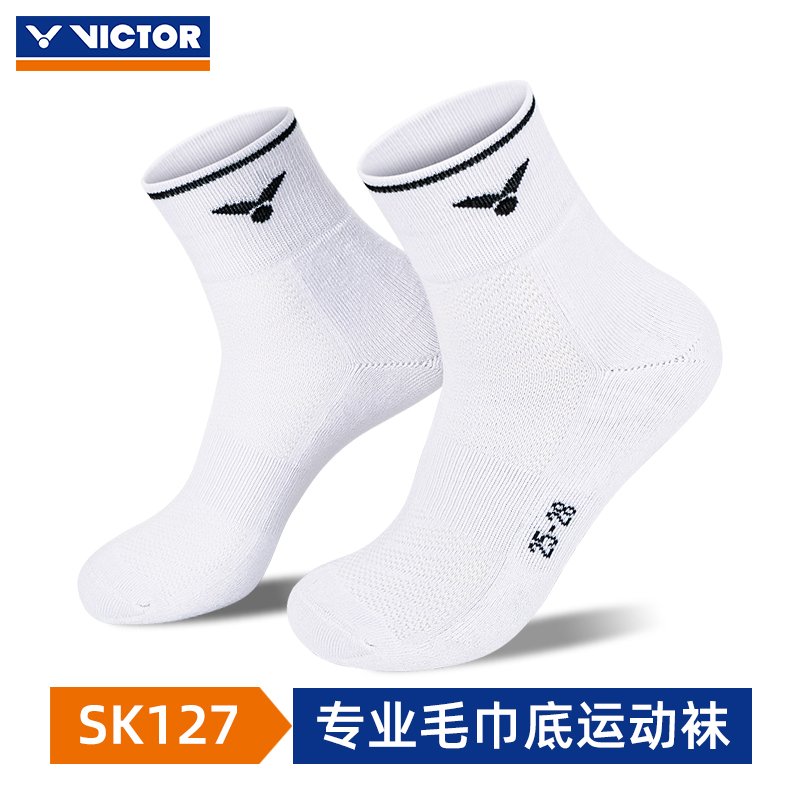 VICTOR胜利羽毛球袜 维克多加厚毛巾底袜子运动网球袜两双装SK127