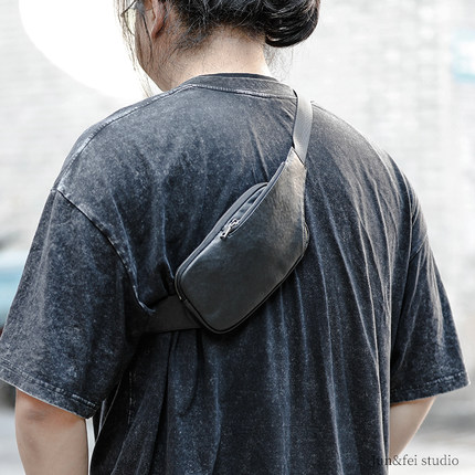 XMYB 2026新款复古牛皮运动胸包 日系简约休闲贴身真皮 手机包