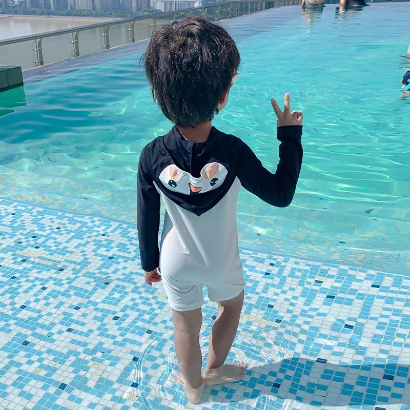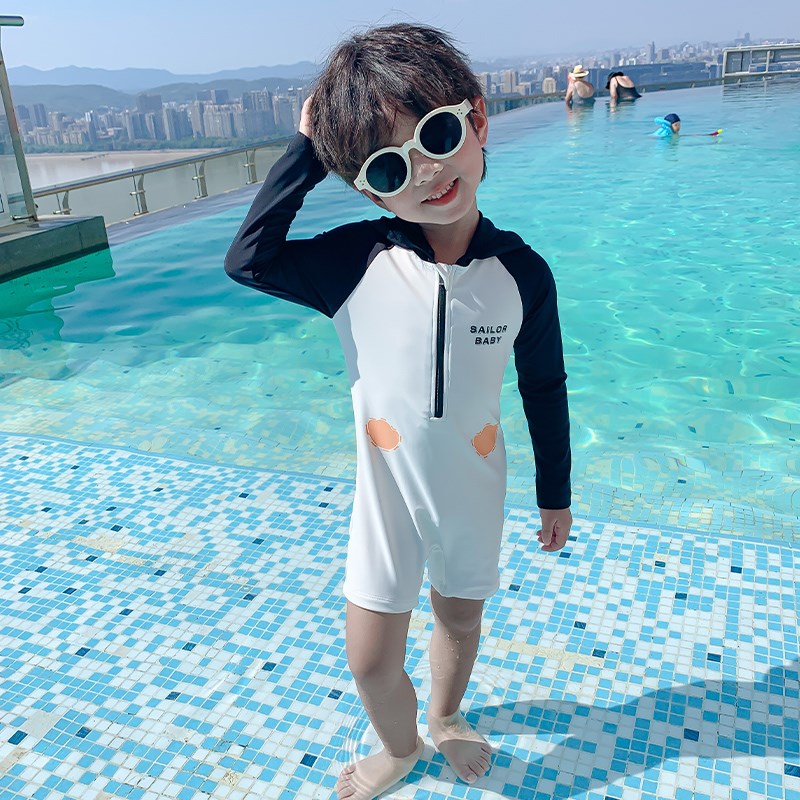 男中童泳衣夏季新款男孩宝宝洋气儿童连帽网红时尚连体卡通游泳装