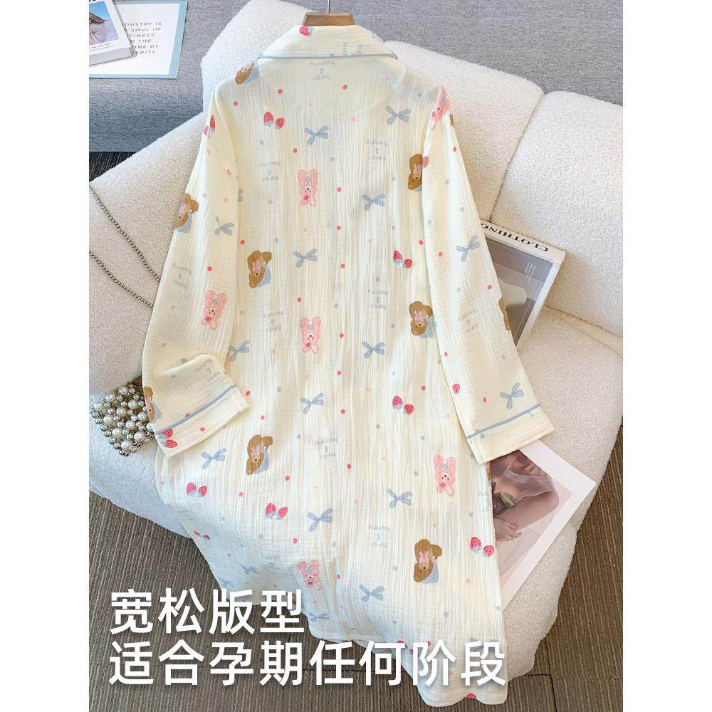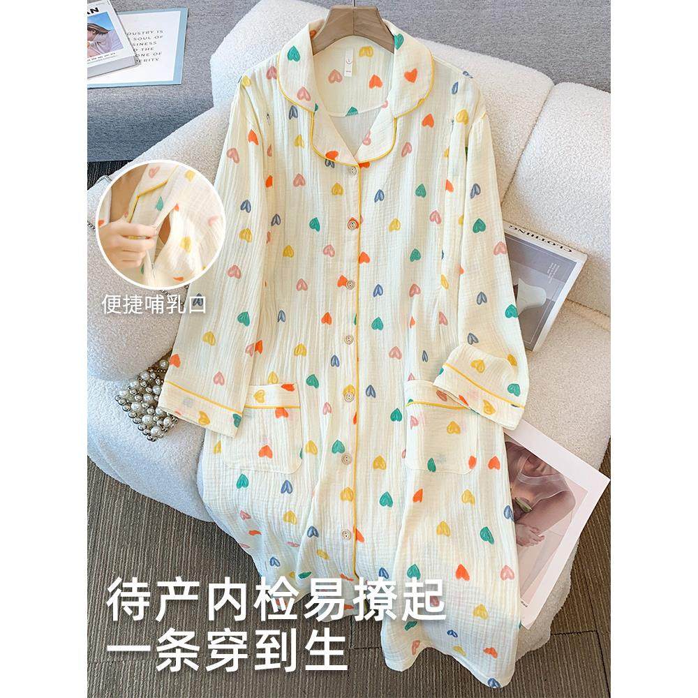 纯棉纱布护理睡衣两件套,夏季医院单薄孕妇裙,产房坐月子服