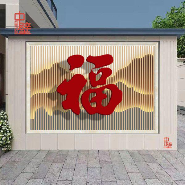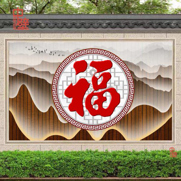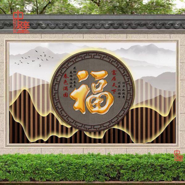 墙岩瓷砖微晶板户外影别墅迎新中式照壁画定制壁背景墙门福字庭院