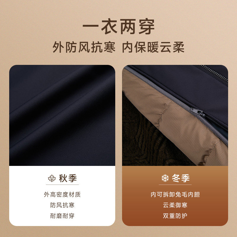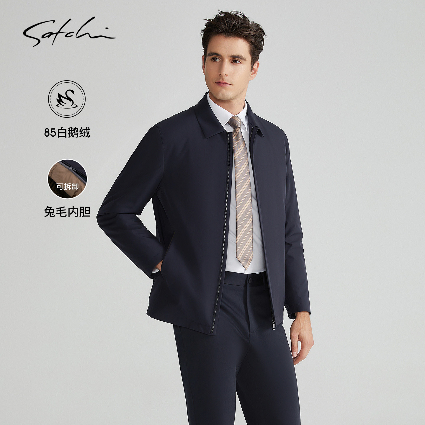 [可拆卸兔毛内胆]SATCHI沙驰男装男士尼克羽绒服冬季鹅绒夹克外套