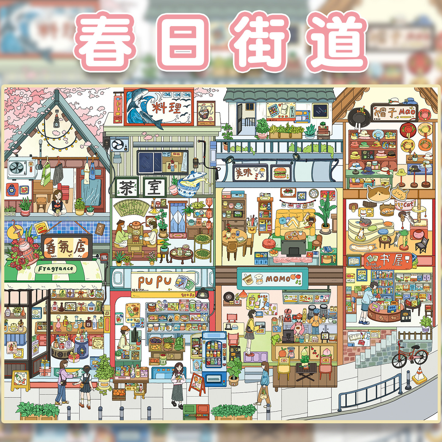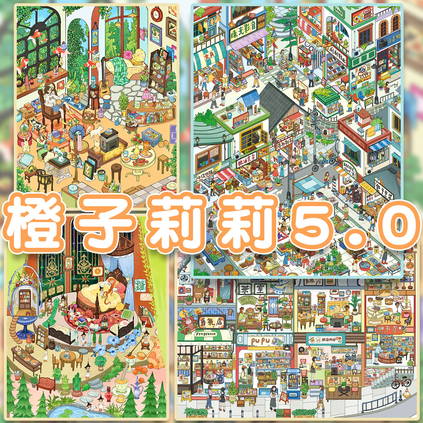 橙子莉莉5.0造景贴纸街道系列哩力狸画风绿光春日街道格子间大号微缩场景3D立体小屋贴画手帐手工diy玩具女孩