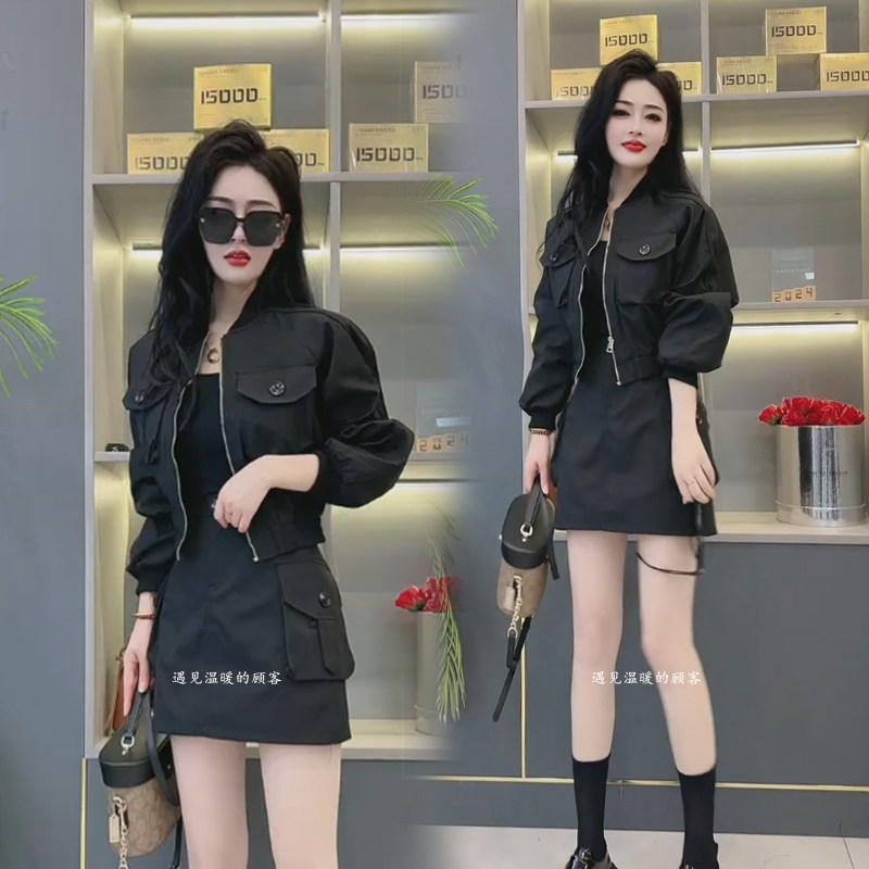 2025春秋季新款韩版洋气时尚工装套装女棒球服外套短裙休闲两件套