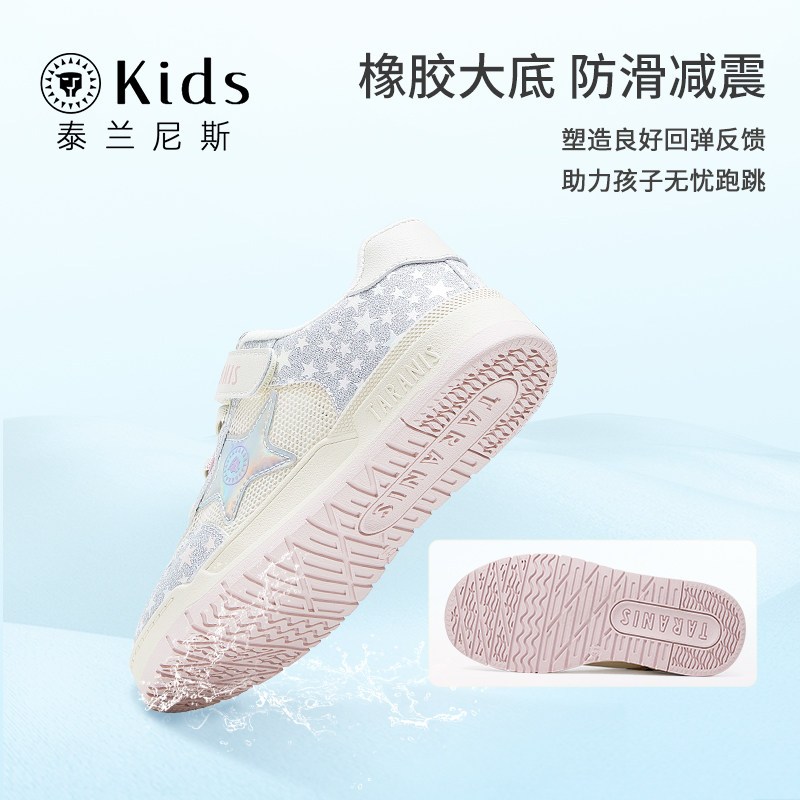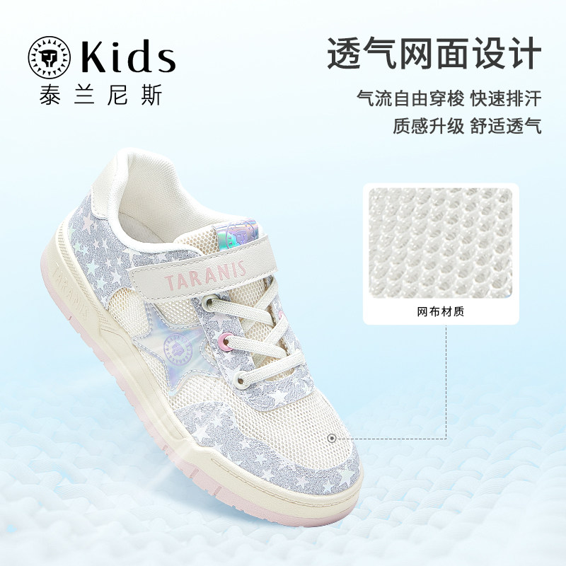 泰兰尼斯kids女童夏季板鞋新款星星滑板鞋低帮透气学生休闲儿童鞋