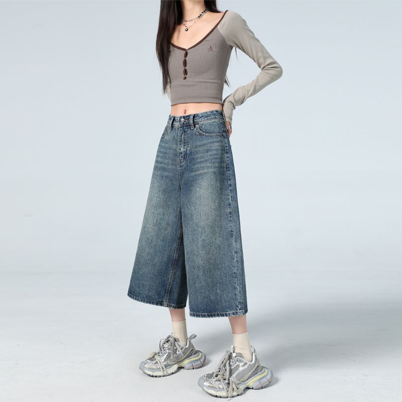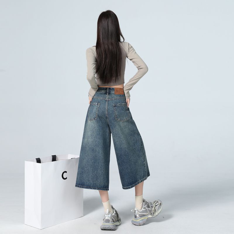 阔腿七分牛仔裤女秋季秋冬2025新款高腰松弛感慵懒风直筒五分中裤