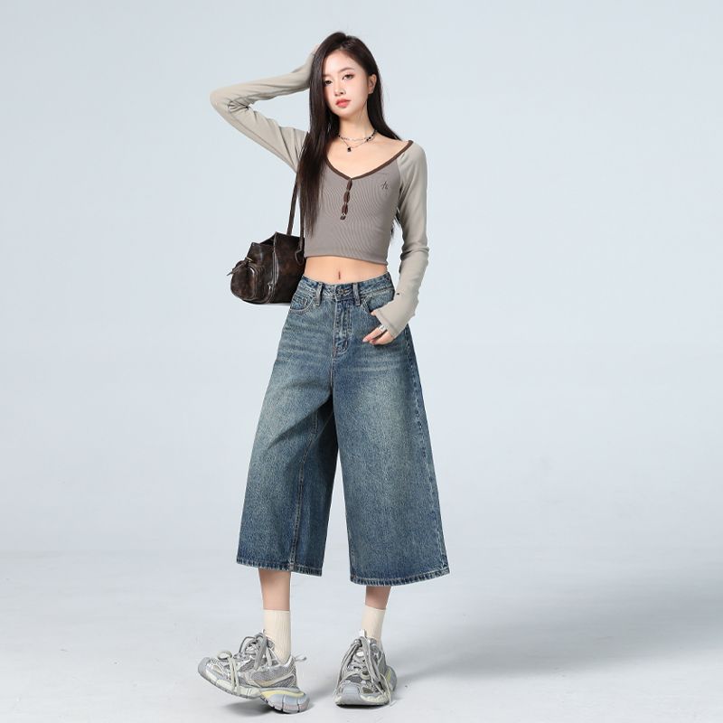 阔腿七分牛仔裤松弛感慵懒风直筒