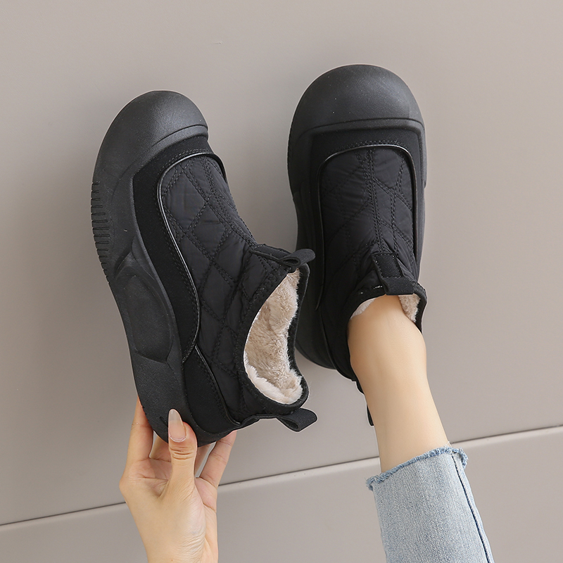 他她女孩老北京棉鞋女冬季保暖黑色防滑工作鞋一脚蹬妈妈鞋加休闲