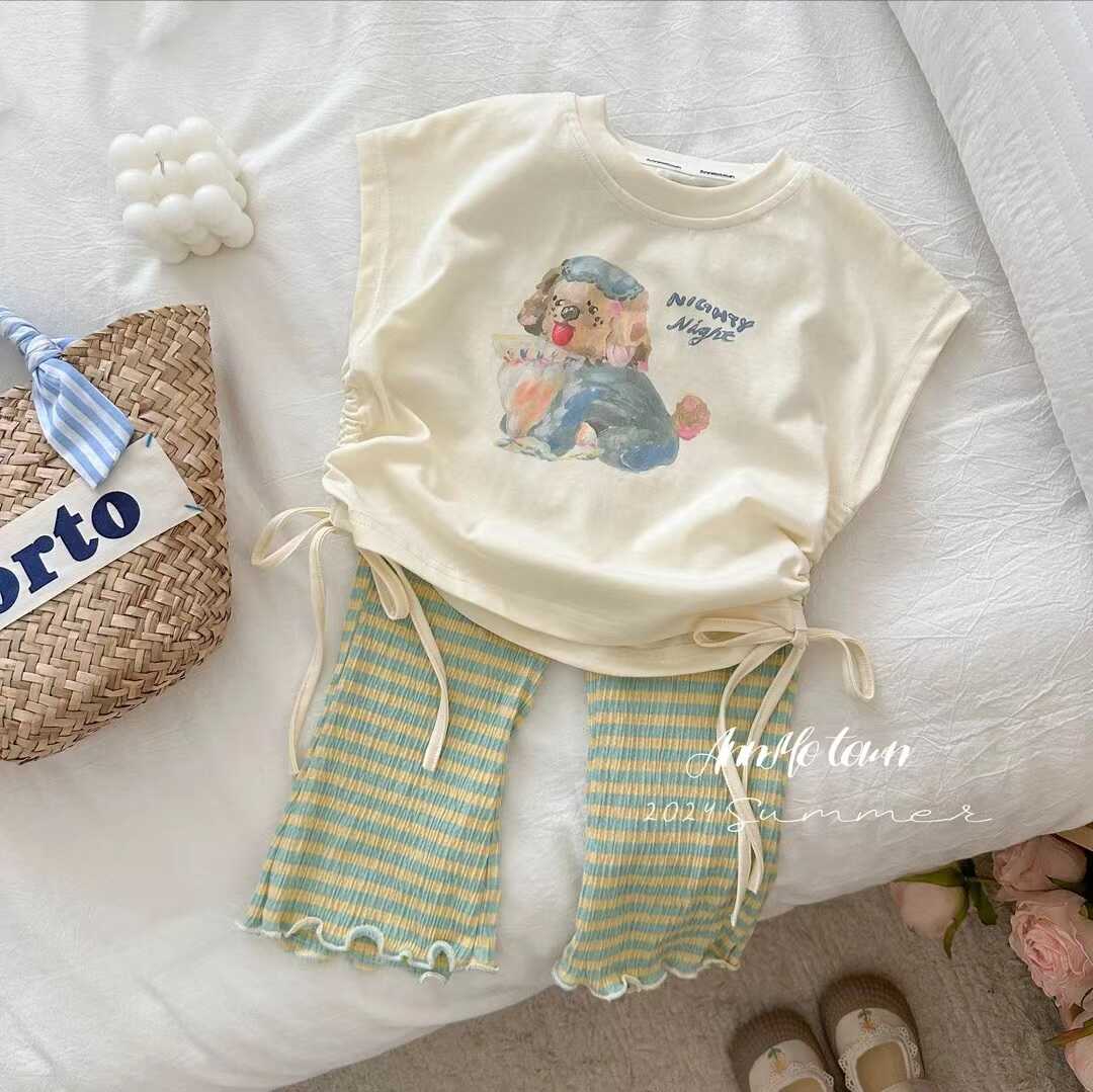 女童夏季印花套装儿童新款百搭直筒裤女宝宝洋气无袖背心两件套潮