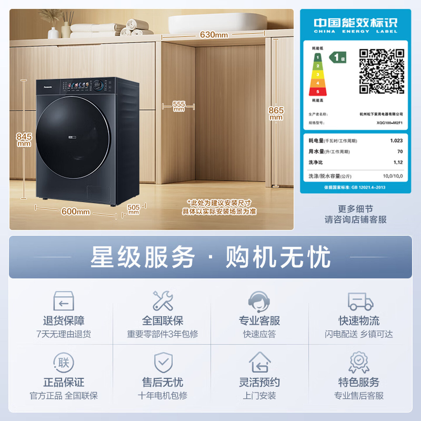 松下小薄荷S5系列洗烘一体滚筒洗衣机全自动家用双智投纳诺怡