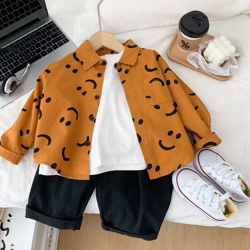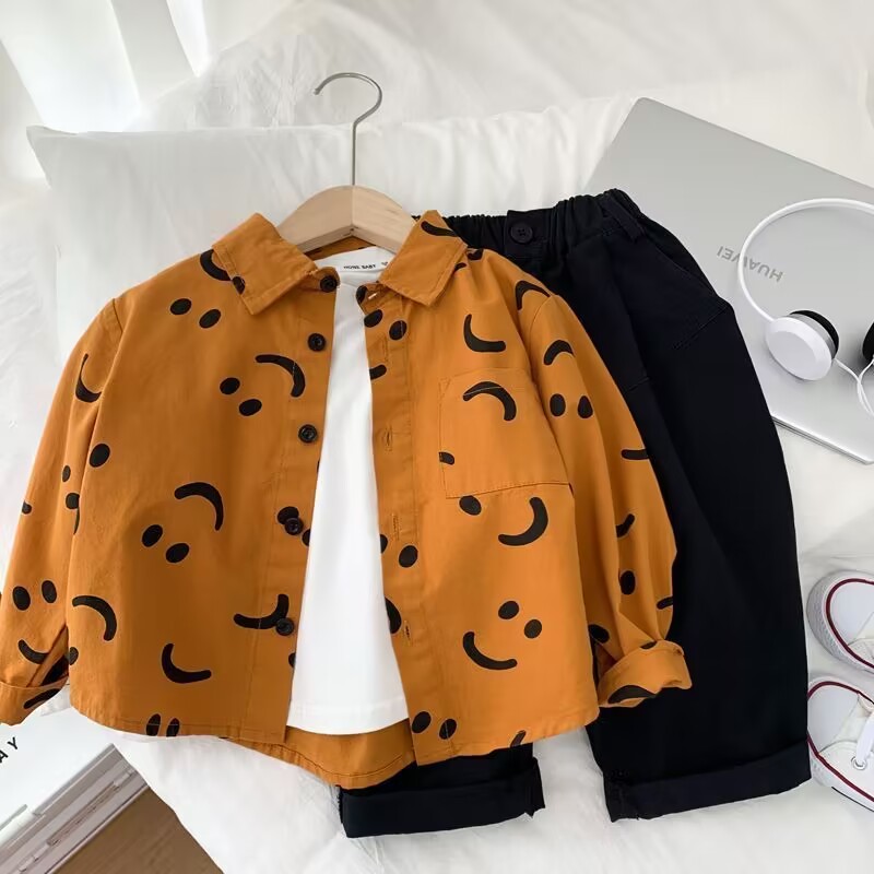男童长袖衬衫秋装2024新款儿童装纯棉韩版休闲衬衣中小童帅气童装