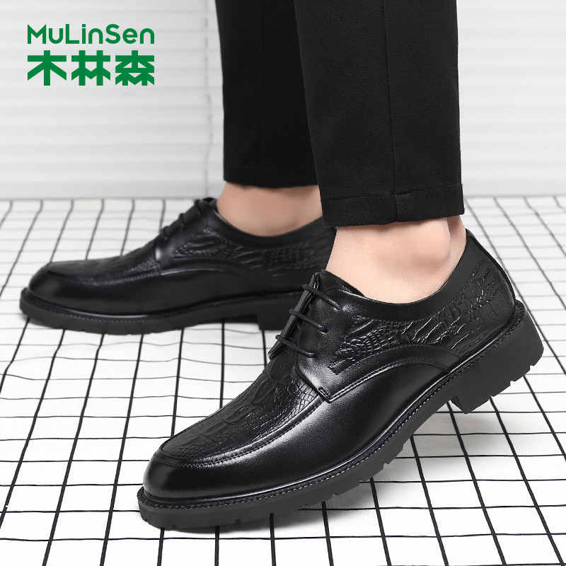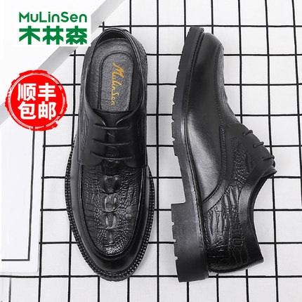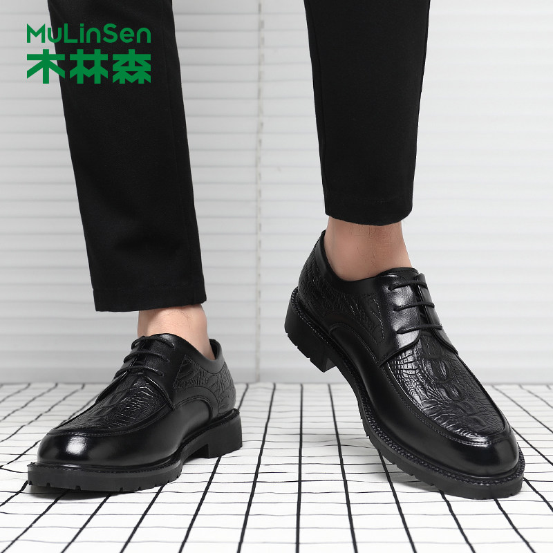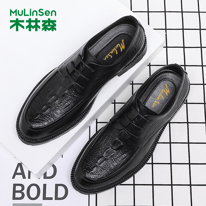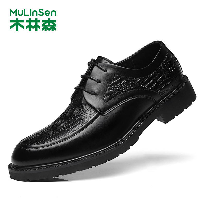 木林森男鞋真皮鳄鱼纹英伦皮鞋男