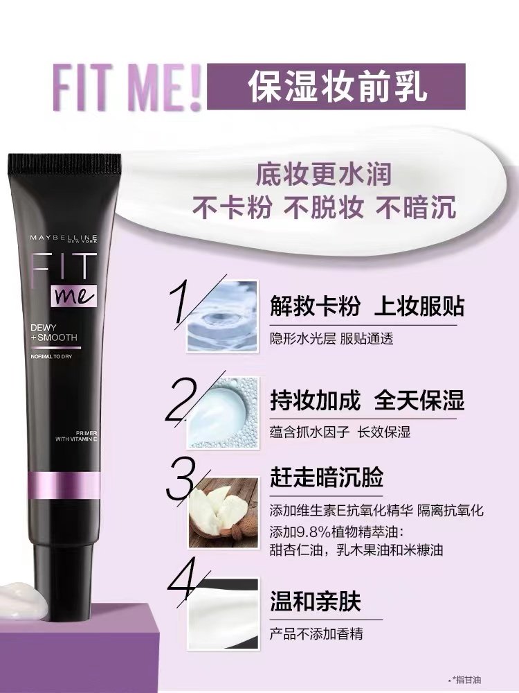 美宝莲fitme定制妆前乳隔离霜保湿底妆打底持久补水控油隐形毛孔