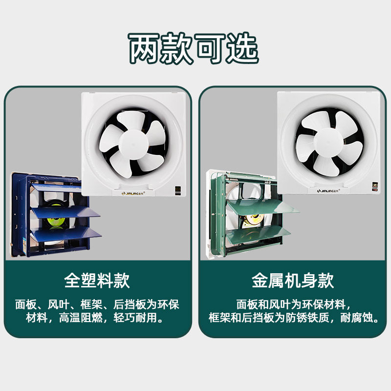 金羚排气扇全塑百叶窗式换气扇卫生间低噪墙壁厨房抽风机家用强力