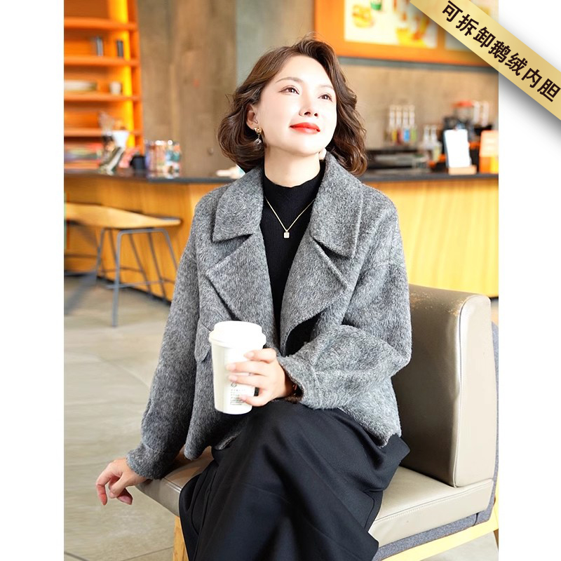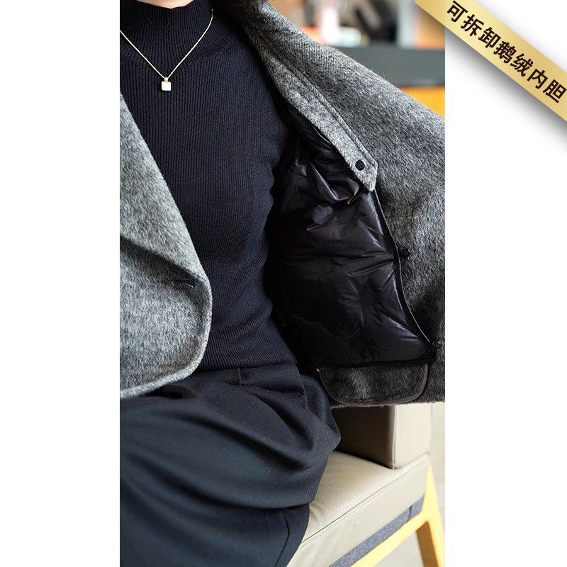秋冬季双面呢大衣女羊毛外套可拆卸鹅绒内胆2025新款韩版气质毛呢