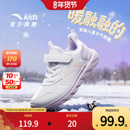 安踏女童鞋跑鞋2025秋冬季新款皮面加绒鞋子官方旗舰店儿童运动鞋