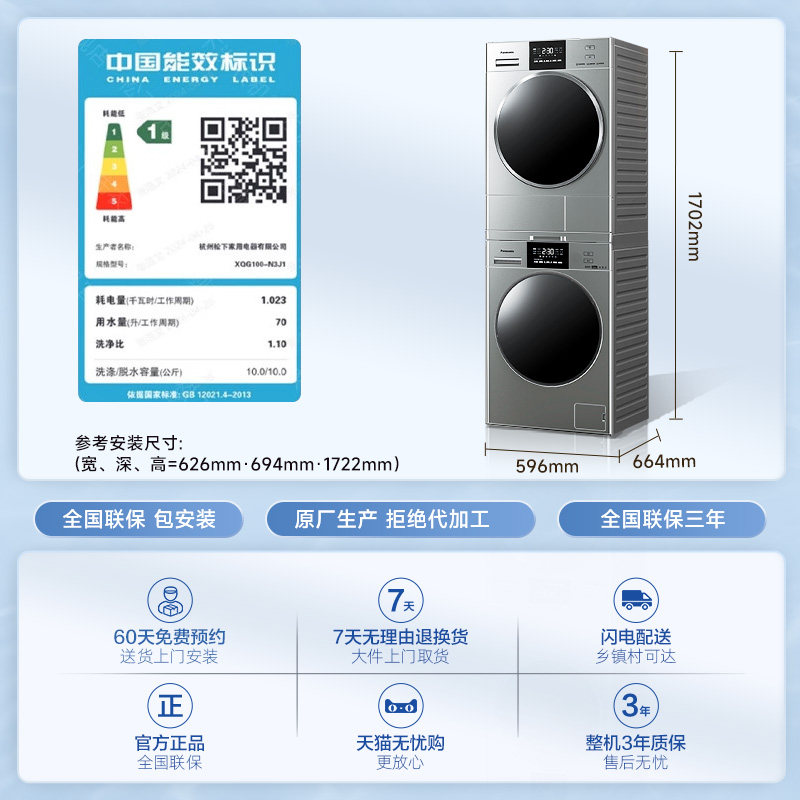松下白月光4.0轻奢洗烘套装10KG家用除菌滚筒洗衣机除毛变频干衣