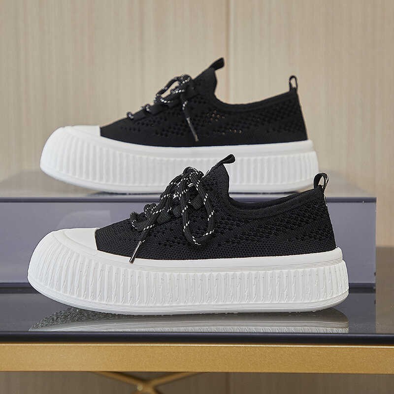 一脚蹬网面飞织鞋女2024夏y季新款镂空透气帆布鞋百搭懒人鞋网布