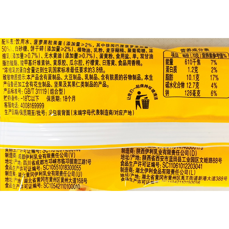 伊利牧场黄油菠萝味雪糕70克冰淇淋冷饮冰激凌