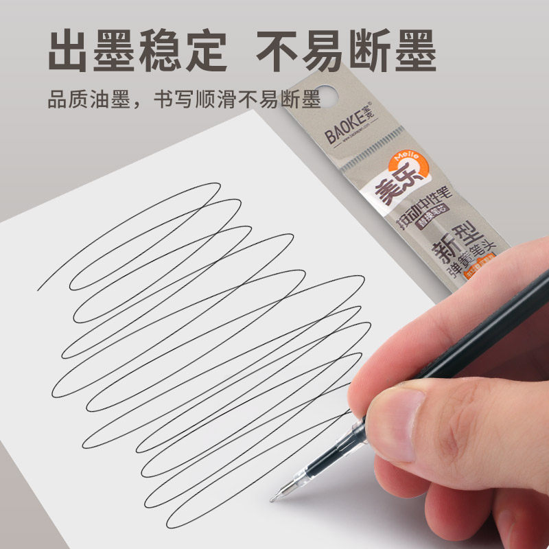 宝克按动笔芯顺滑0.5mm黑色中性笔替芯AS笔头按动笔考试专用笔芯