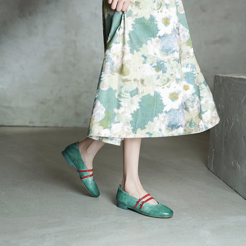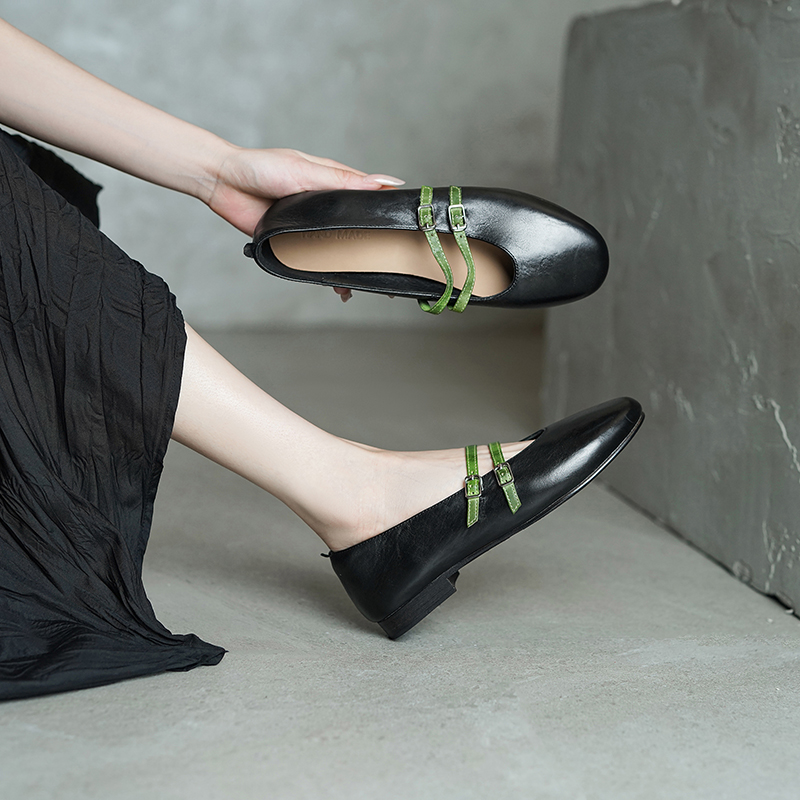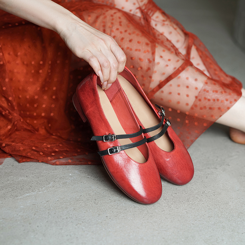 [CX原创]波兰头层水洗马皮!2025新款法式圆头平底玛丽珍浅口单鞋