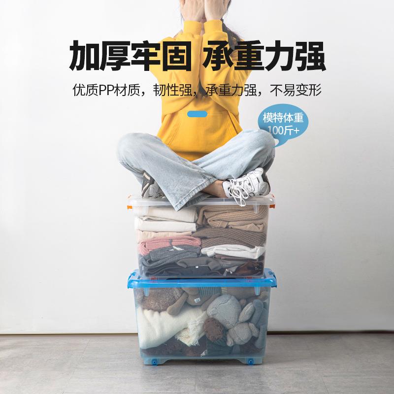日本塑料收纳箱儿童玩具衣服整理箱大号储物箱带滑轮透明收纳
