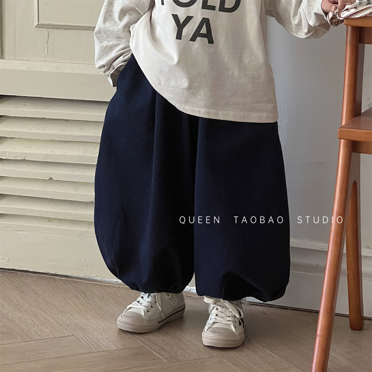 儿童裤子韩国女童复古贴补牛仔灯笼裤2025春秋新品宝宝百搭阔腿裤