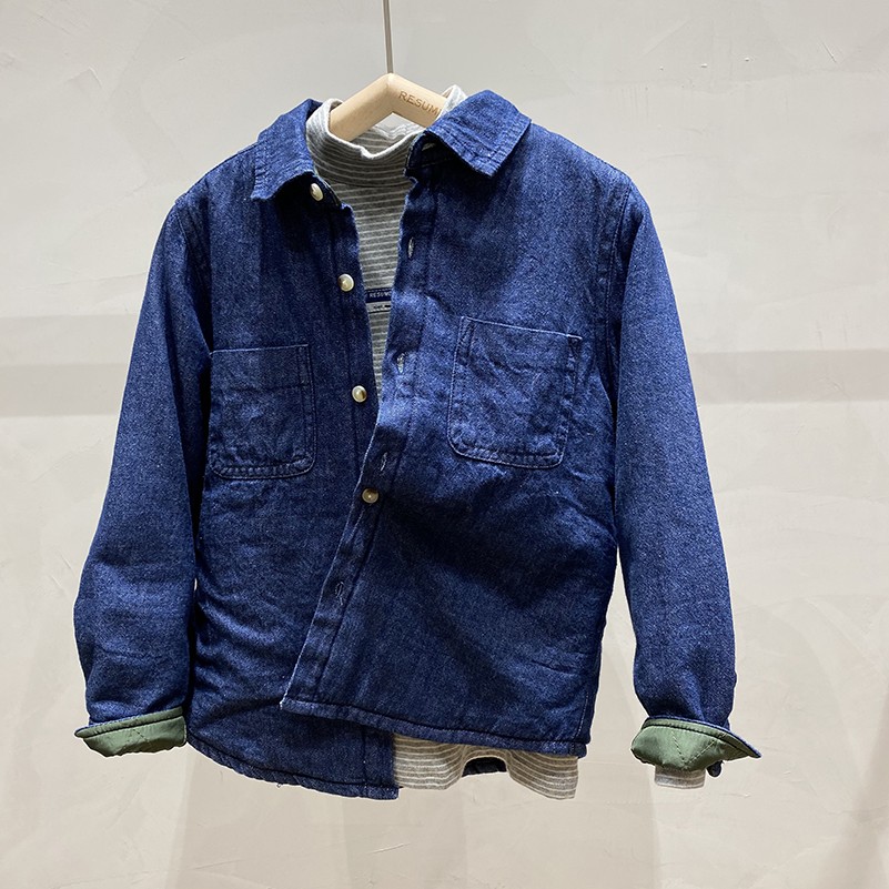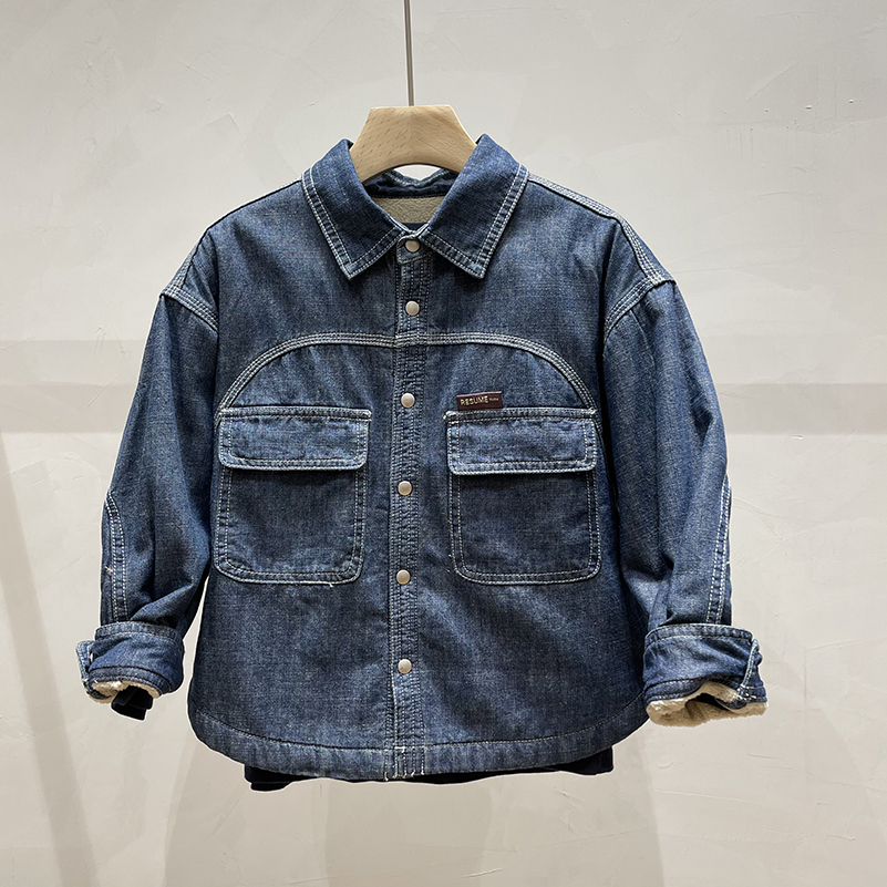 简历家童装男童冬装宝宝纯棉加厚牛仔衬衫儿童中大童加绒牛仔衬衣