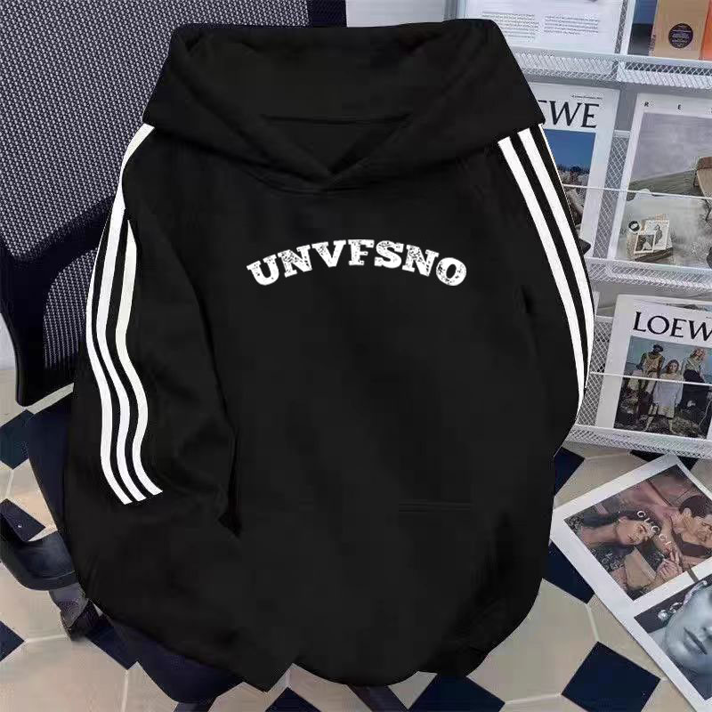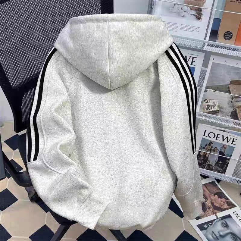300斤加大码连帽卫衣男新款美式条纹秋冬季加绒厚重磅宽松情侣款