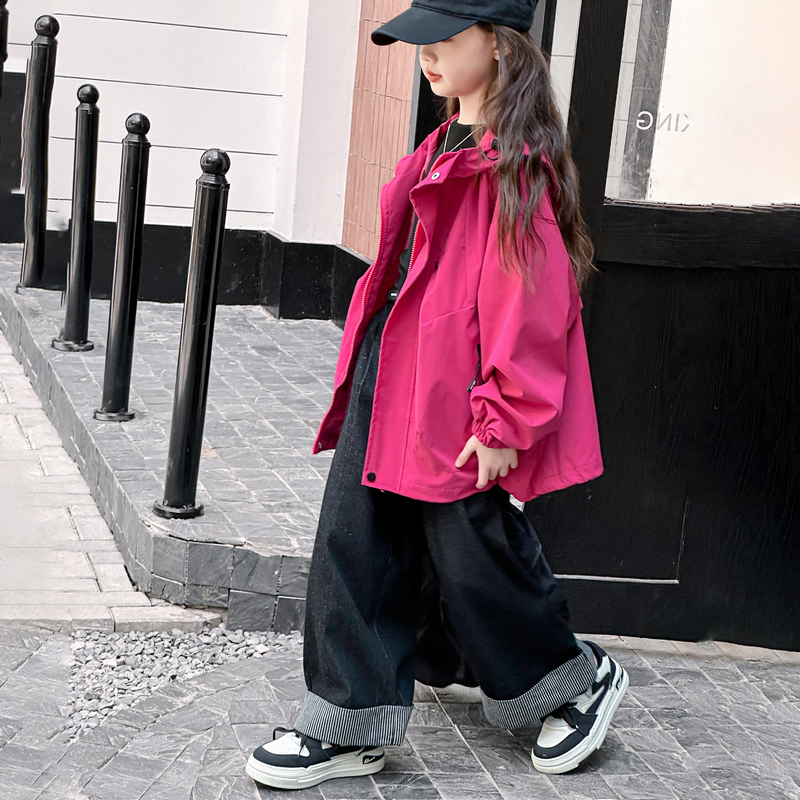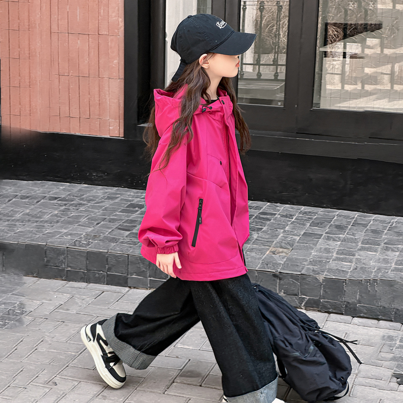 ROEMEY韩国女童外套春秋2025新款大童女孩秋季夹克儿童户外冲锋衣