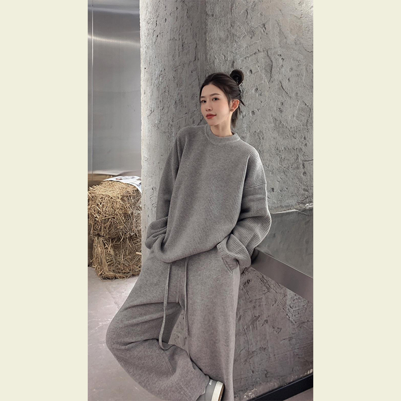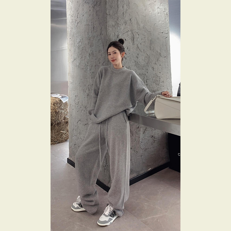 运动休闲套装女冬装搭配一整套欧货复古灰色卫衣阔腿裤两件套洋气