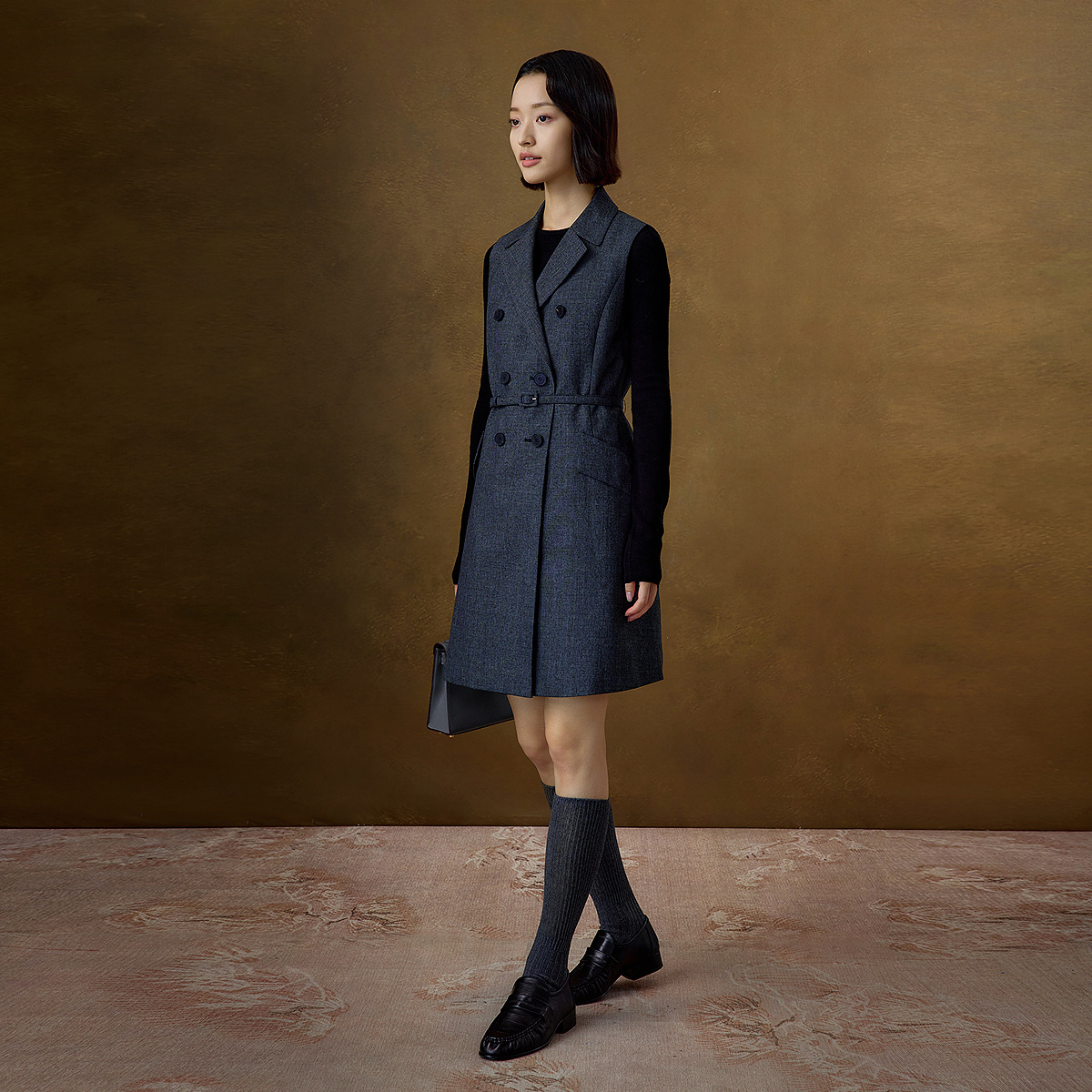 VGRASS维格娜丝女装裙子秋冬冬季新款长款显瘦西装马甲连衣裙