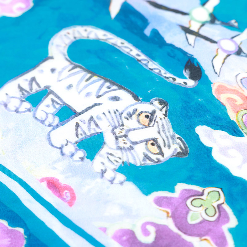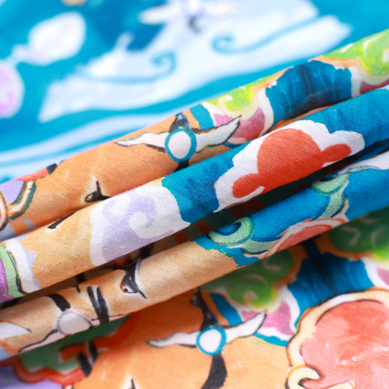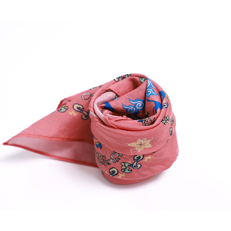 非鱼2024春季多色小方巾女丝巾百搭领巾轻薄文艺复古印花包头围巾