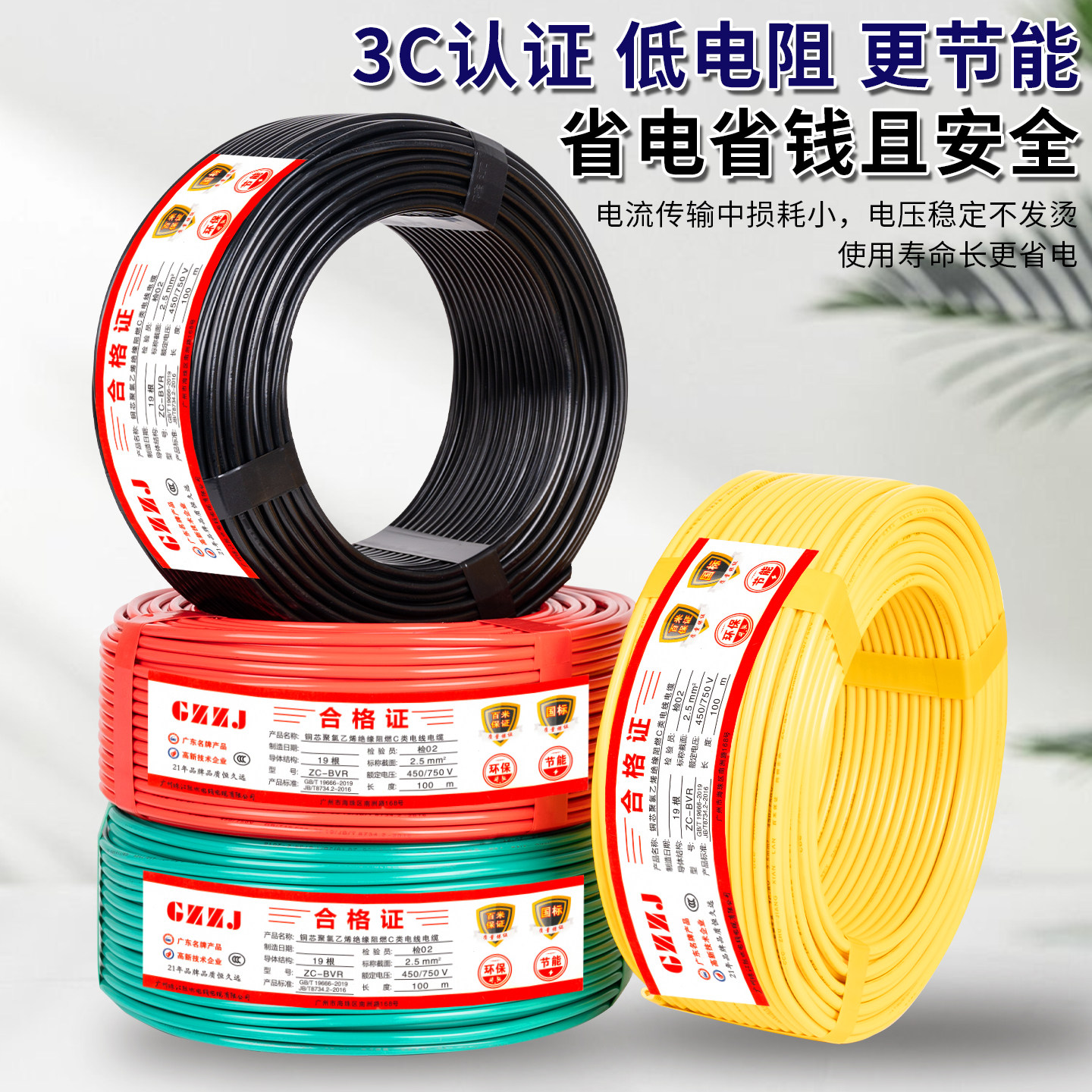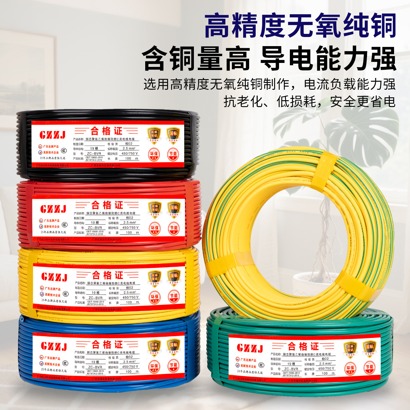 珠江国标铜线BVR1.5/2.5/4/6平方家用纯铜电线电缆多股阻燃家装线