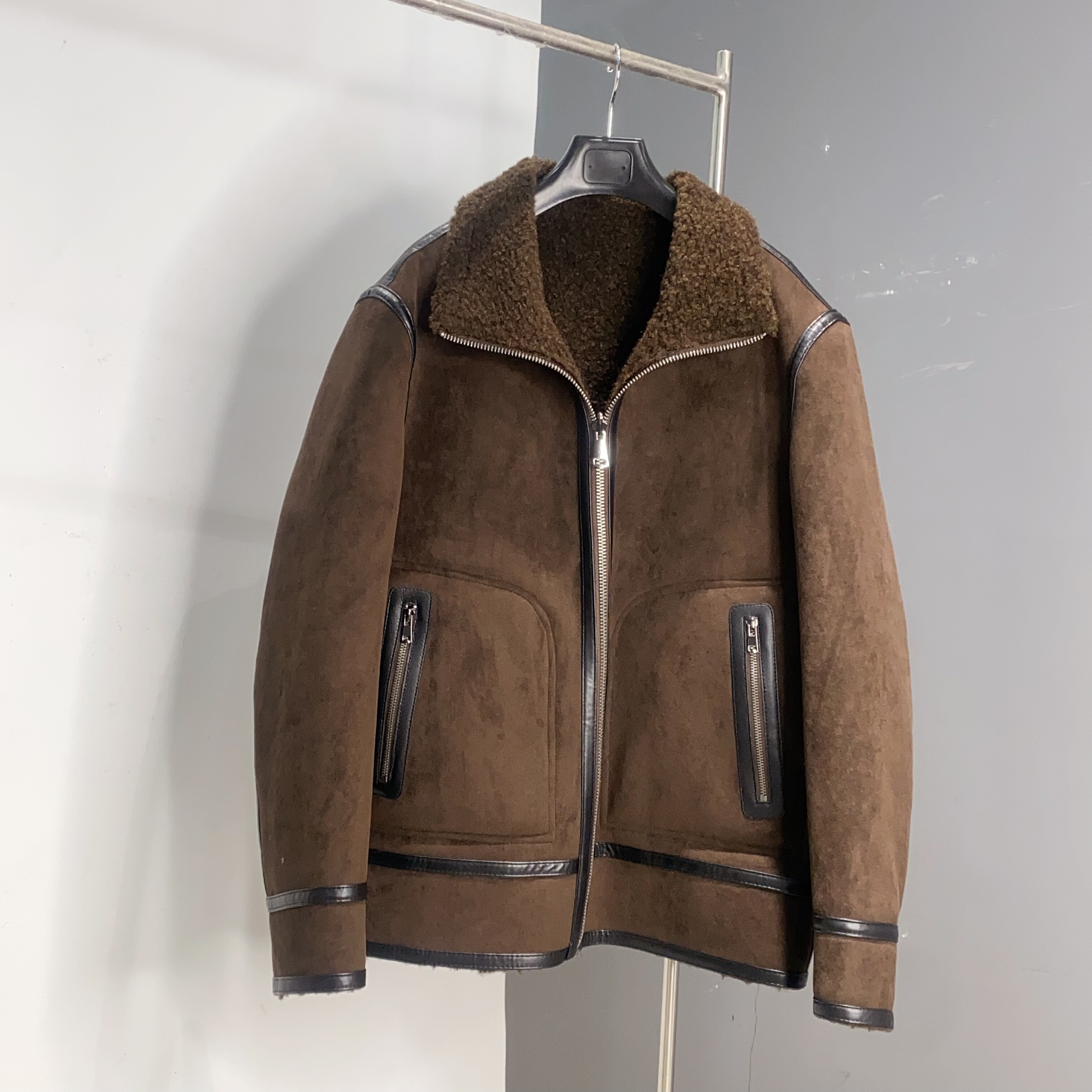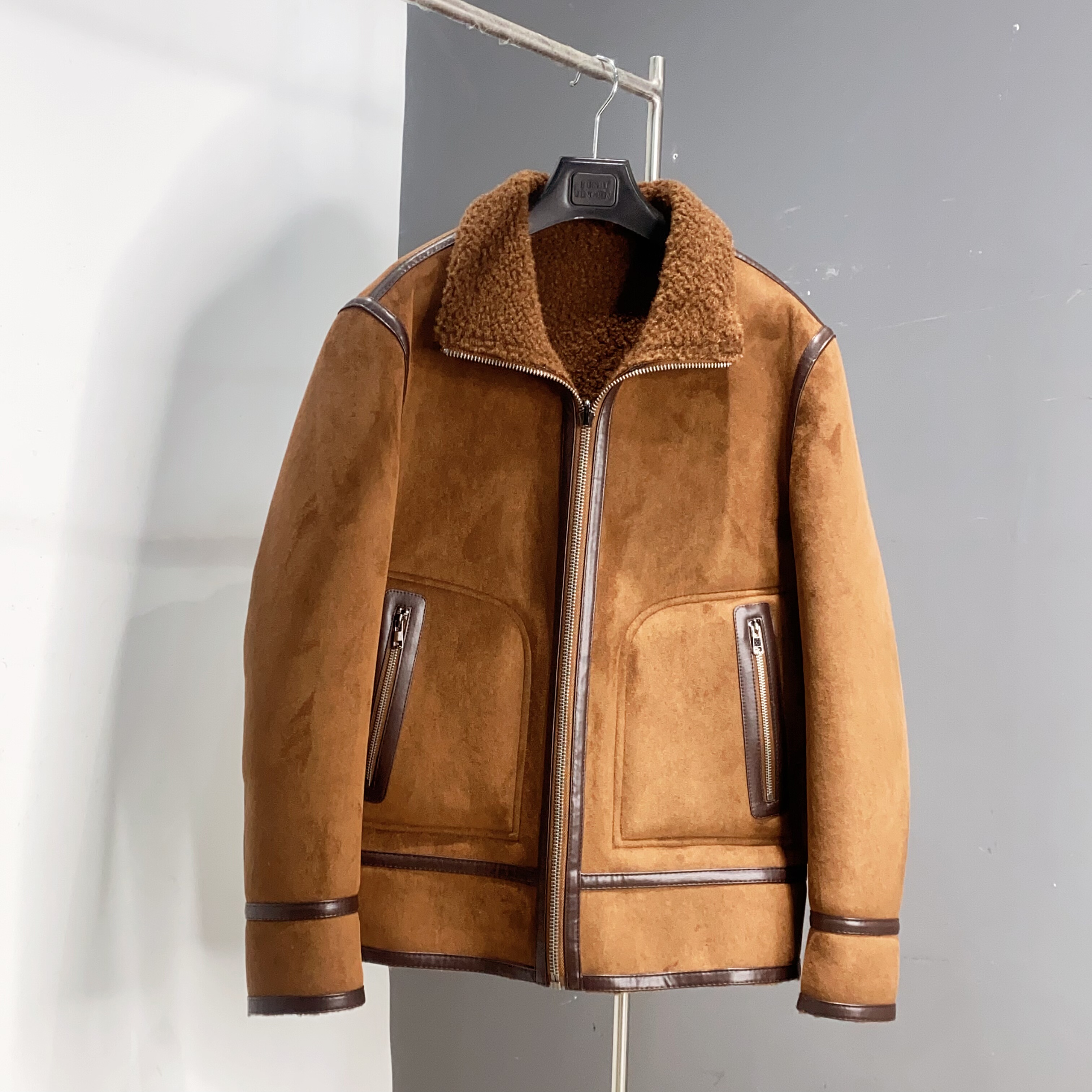 皮毛一体外套冬加绒麂皮绒皮衣夹克羊羔绒男士大衣复古皮袄BZH