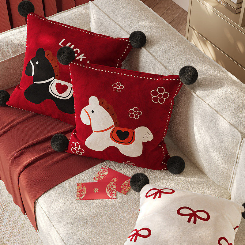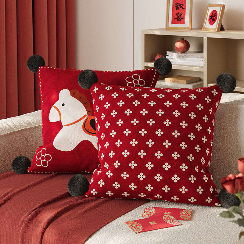 红色新年喜庆抱枕客厅沙发靠背垫马年卧室床上靠枕飘窗靠垫可拆洗