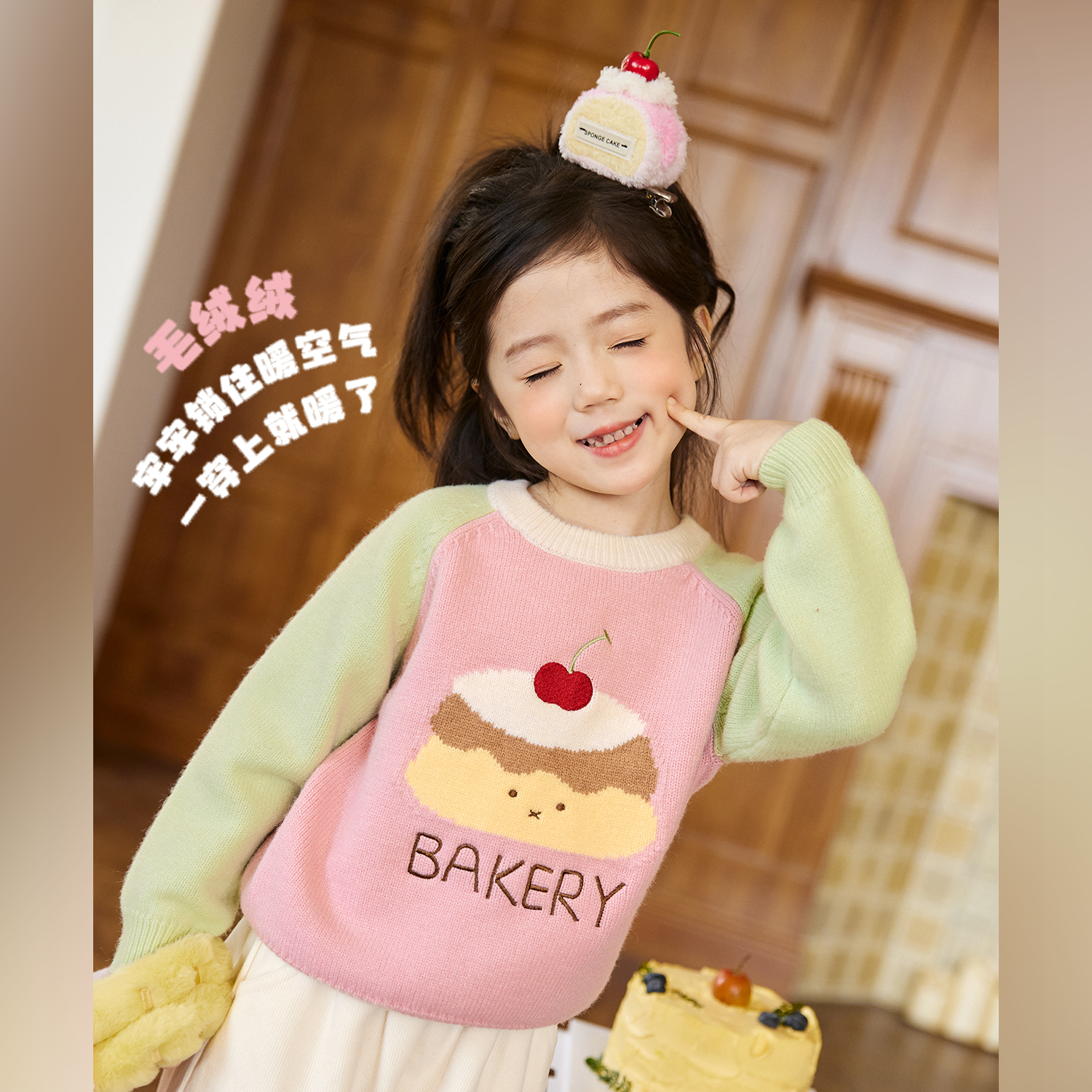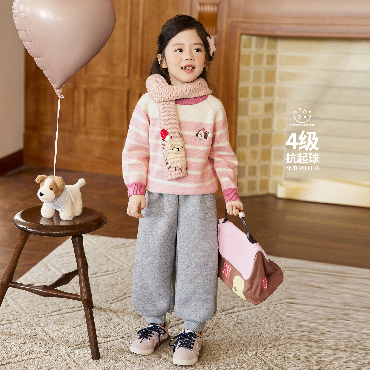 小O宝Okids童装宝宝毛衣女套装插肩袖图案2025冬季新款女童针织衫