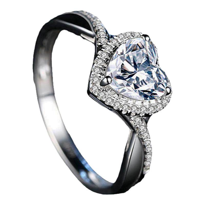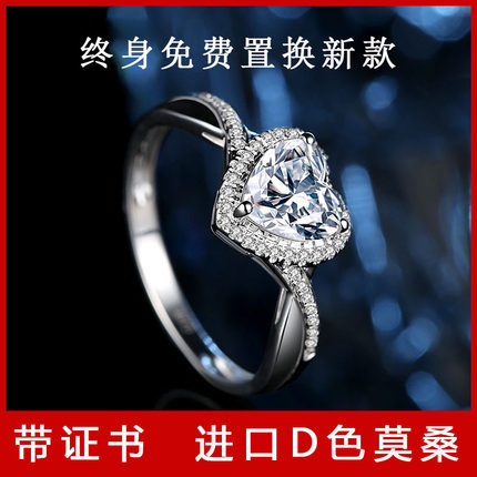 正品莫桑石戒指1克拉心形扭臂925银情侣男女一对戒结婚订婚钻戒礼