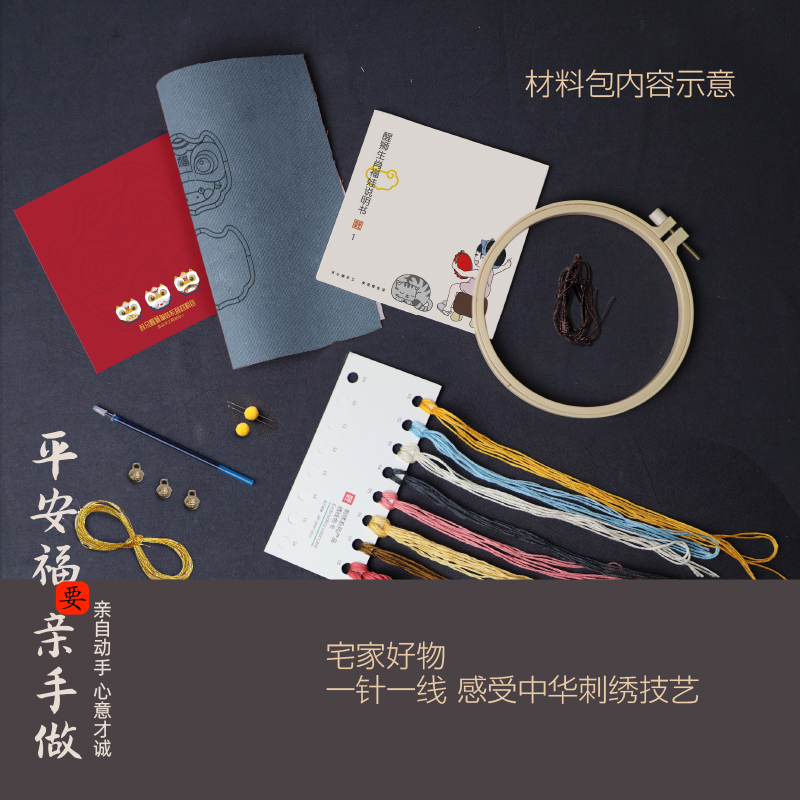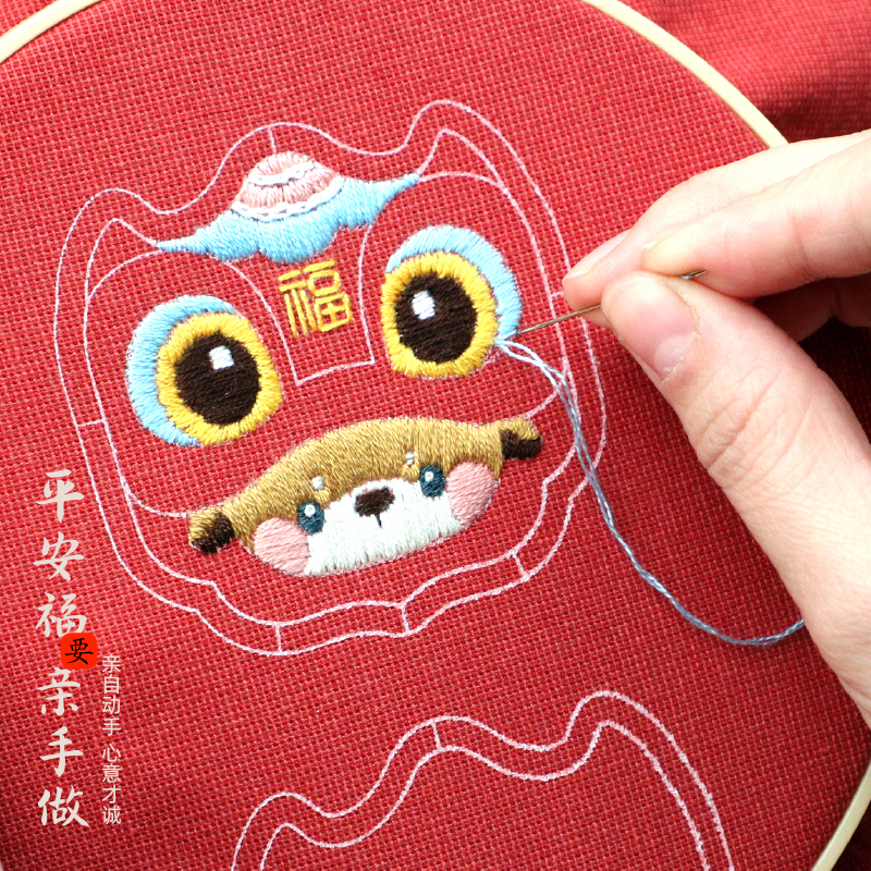 苏朵手工刺绣diy醒狮手工自绣平安福苏绣手作男友生肖材料包