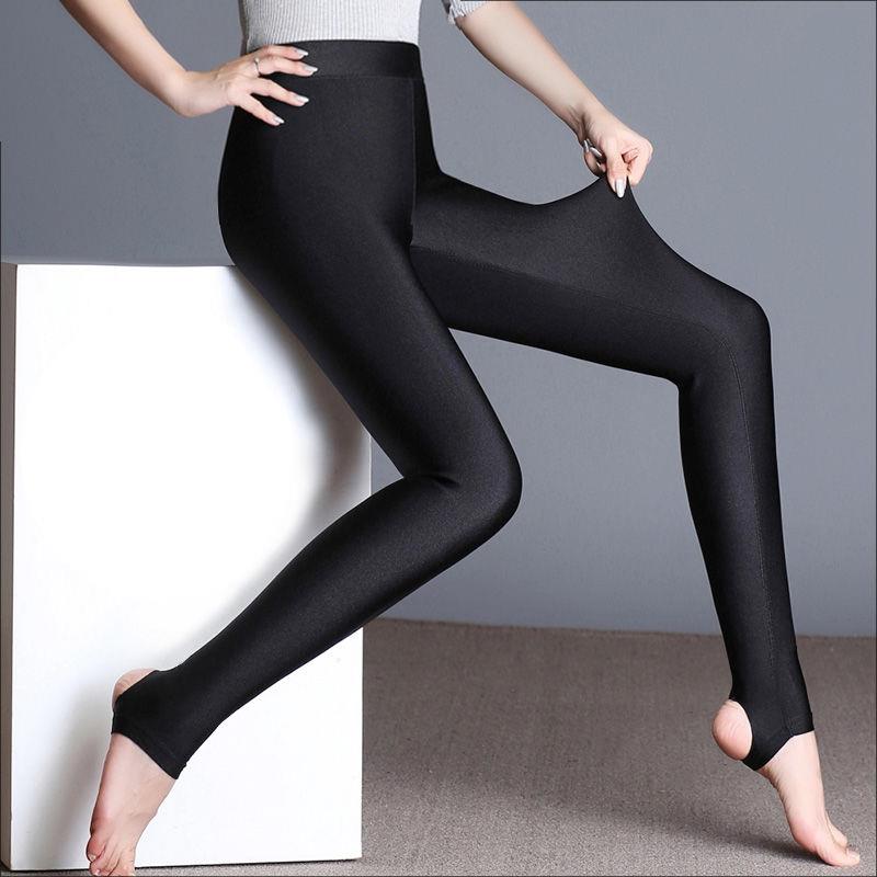 加绒光泽裤女士高腰打底裤秋冬外穿踩脚大码显瘦踩脚加厚保暖长裤
