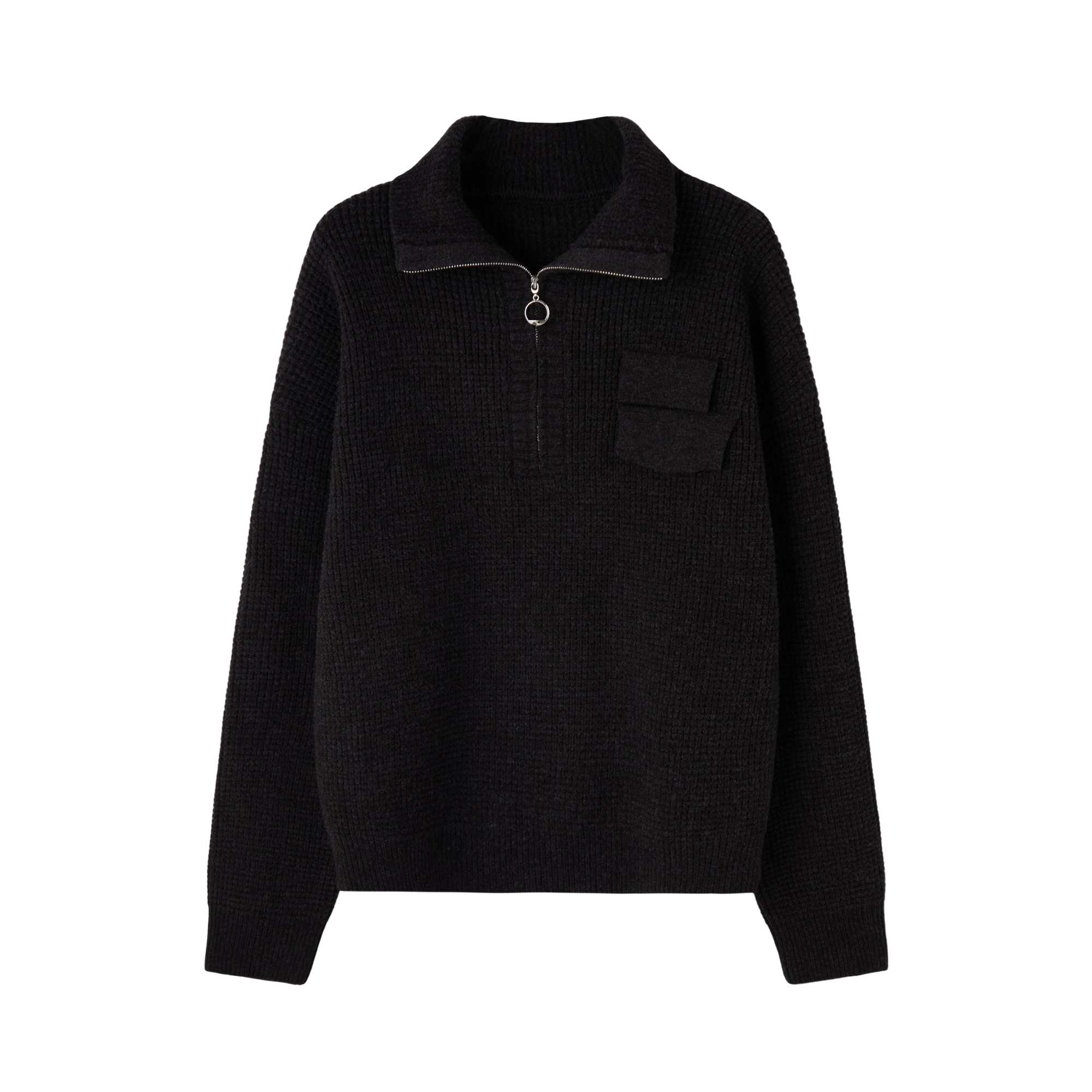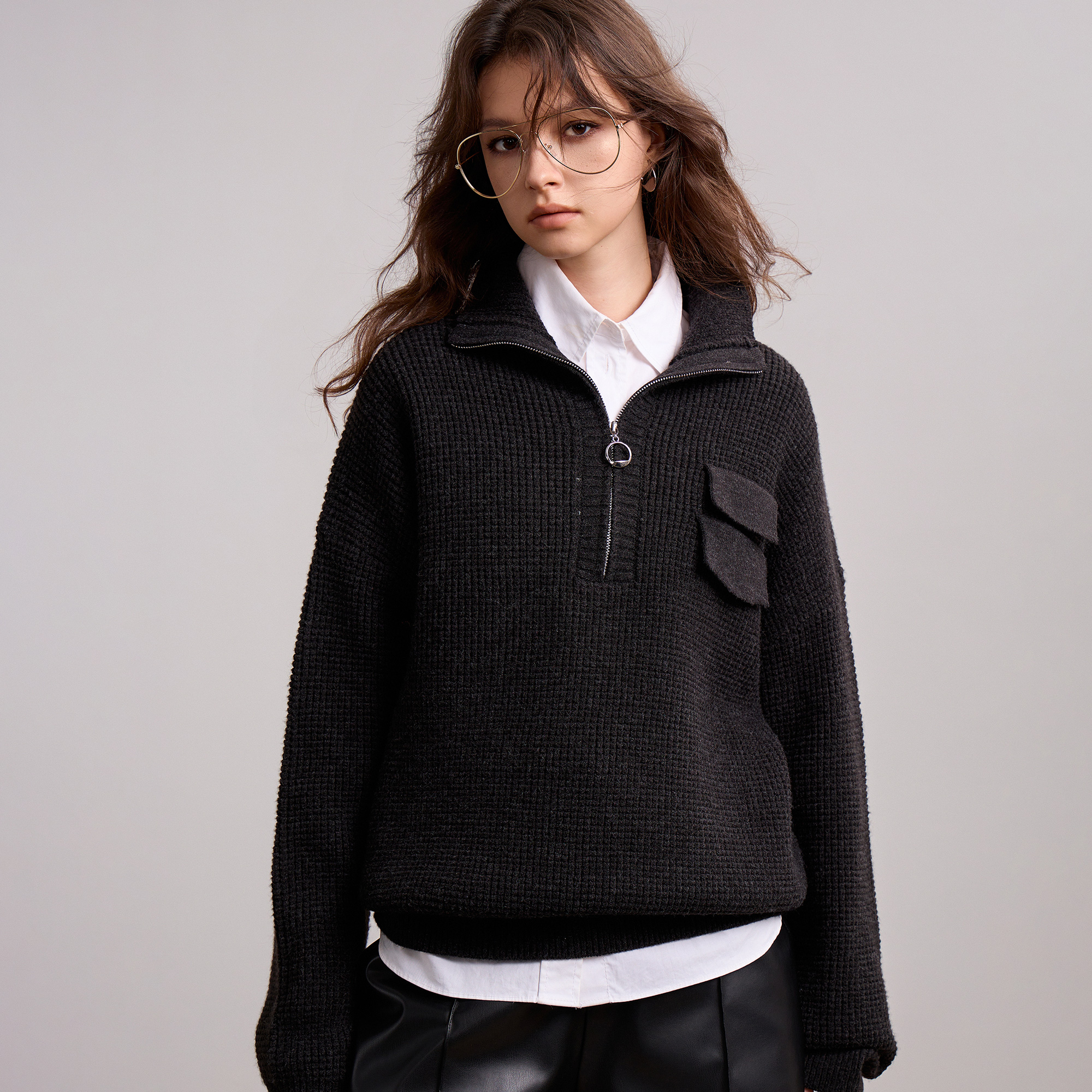 Basic House/百家好温柔风翻领毛衣女2024冬软糯半拉链高领羊毛衫
