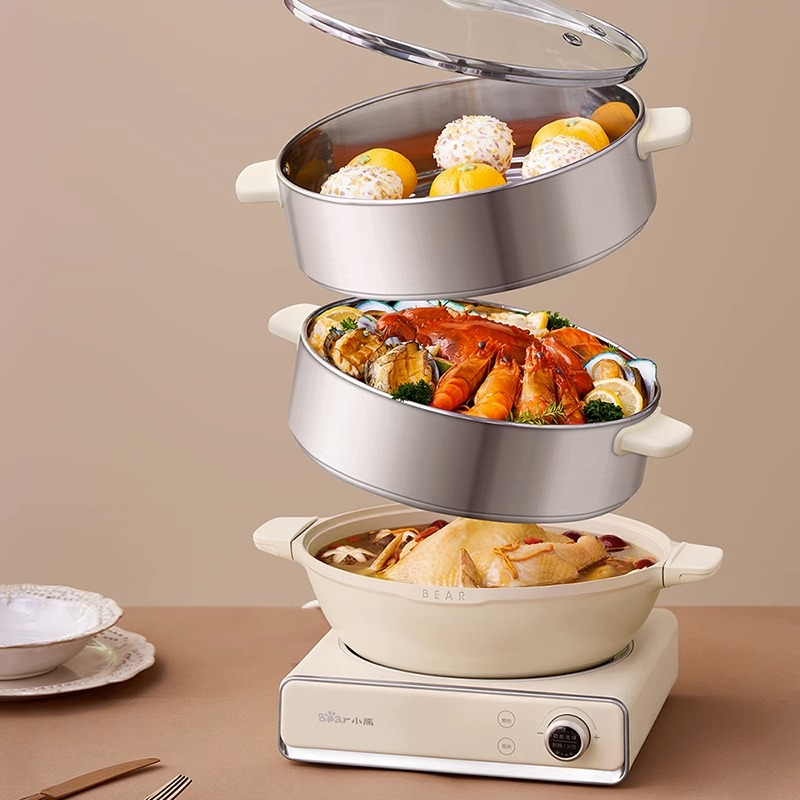 小熊多功能电蒸锅火锅蒸炒家用三层大容量分体电炒锅大功率电煮锅