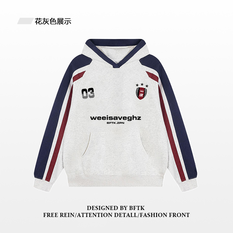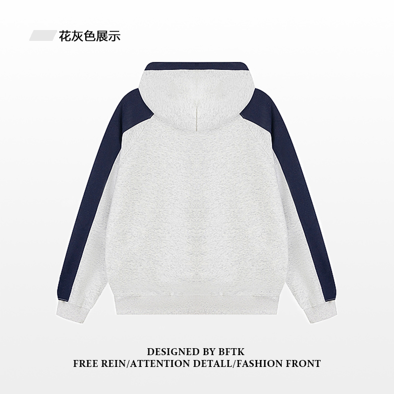 美式高街vintage拼接设计连帽卫衣男款秋冬新款潮牌百搭休闲外套